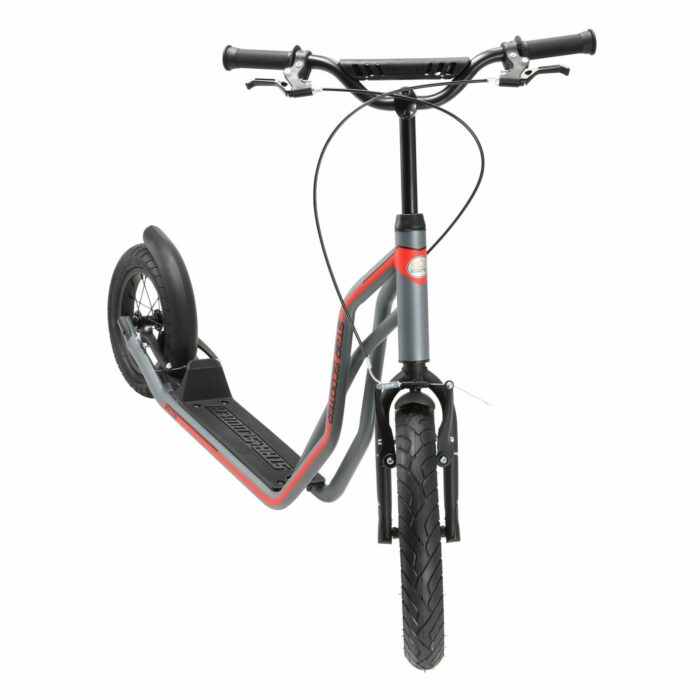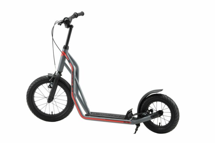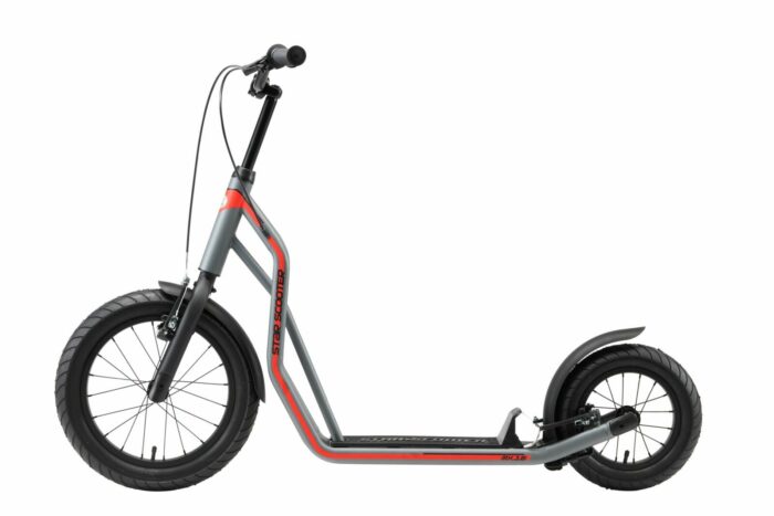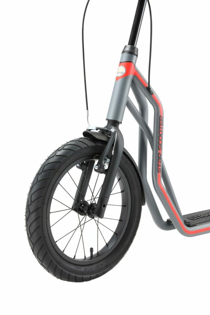 Zeer stabiel stalen buisframe met meerder slagvaste laklagen in diverse kleuren. Deze step voldoet aan alle normen en vereisten van de EU, stuurt licht, is duurzaam en gaat lang mee. De step is veilig, met gladde lasnaden. Dit model heeft een kindvriendelijke handrem voor extra veiligheid tijdens het spelen. Langdurig plezier gegarandeerd, met 16 inch luchtband voor en 12 inch achter.