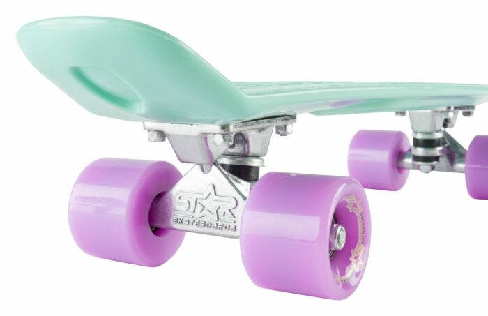 **De Star skateboards hebben een vintage uiterlijk, dankzij de retro kleuren van de 56 cm lange en circa 12 cm brede decks.** ( De wieltjes steken wat uit, zodat de totale breedte ca 15 cm is) De decks zijn gemaakt van PP (polypropyleen) wat ze superstabiel, maar toch ook enigszins flexibel maakt. De overmaatse High-Performance Aluminium Trucks, met Soft Bushings zijn voorzien van ABEC-7 High Speed Precision kogellagers en 60×45 mm gegoten wielen van Polyurethaan. Met de optimale hardheidsgraad 78A garanderen deze wielen een perfecte loop. Dit is niet maar zo het eerste het beste speelgoed!