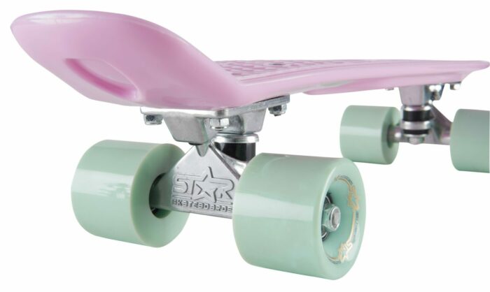 De Star skateboards hebben een vintage uiterlijk, dankzij de retro kleuren van de 56 cm lange en circa 12 cm brede decks. ( De wieltjes steken wat uit, zodat de totale breedte ca 15 cm is) De decks zijn gemaakt van PP (polypropyleen) wat ze superstabiel, maar toch ook enigszins flexibel maakt. De overmaatse High-Performance Aluminium Trucks, met Soft Bushings zijn voorzien van ABEC-7 High Speed Precision kogellagers en 60×45 mm gegoten wielen van Polyurethaan. Met de optimale hardheidsgraad 78A garanderen deze wielen een perfecte loop. Dit is niet maar zo het eerste het beste speelgoed!