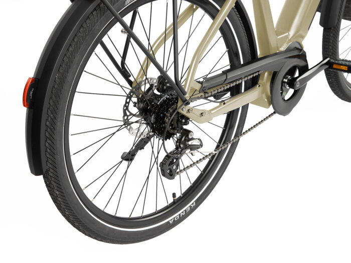 De Bafang 210 middenmotor (70Nm) is onderin het frame, tussen de trappers, gemonteerd waardoor deze e-bike een perfecte balans heeft en een ideale gewichtsverdeling. De wielen zijn voorzien van hydraulische schijfremmen, het achterwiel van een Shimano Altus 8 versnellingen derailleur. De Extreme is uitgerust met fraaie spatborden, een kettingscherm, zijstandaard en verlichting, zoals dat bij een volwaardige stadsfiets hoort. De fiets is leverbaar in de moderne kleuren Dark Grey en Greige. De ondersteuning werkt mee tot u een snelheid van 25 km/u hebt bereikt. De 13 Ah accu geeft de fiets een grote actieradius waardoor u flinke ritten kunt maken, met wind mee of tegen, heuvel op, heuvel af en eventueel met volle bepakking. Wilt u sportief bezig zijn dan kunt u de fiets ook zonder trpaondersteuning gebruiken. De vrijloopfunctie van de motor zorgt in dat geval niet voor extra weerstand.
