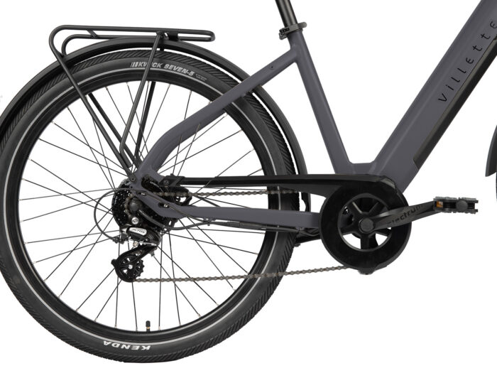 De Villette Extreme RM is een heerlijke fiets voor de prijsbewuste rijder. Het stevige aluminium frame met geïntegreerde 13 Ah accu is voorzien van 27.5 inch wielen met ballonbanden die voor het nodige rijcomfort zorgen. De Bafang motor is in het achterwiel gemonteerd waar die aan het oog wordt onttrokken door de 8 versnellingen derailleur en de schijfrem. De Extreme is uitgerust met fraaie spatborden, een kettingscherm, zijstandaard en verlichting, zoals dat bij een volwaardige stadsfiets hoort. De fiets is leverbaar in de moderne kleuren Dark Grey en Greige. De ondersteuning werkt mee tot u een snelheid van 25 km/u hebt bereikt. De 13 Ah accu geeft de fiets een grote actieradius waardoor u flinke ritten kunt maken, met wind mee of tegen, heuvel op, heuvel af en eventueel met volle bepakking. Wilt u sportief bezig zijn dan kunt u de fiets ook zonder trpaondersteuning gebruiken. De vrijloopfunctie van de motor zorgt in dat geval niet voor extra weerstand.