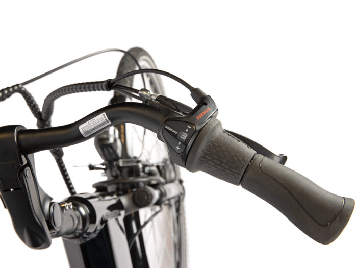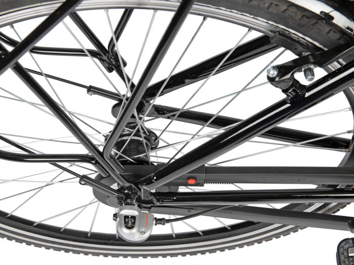 Elektrische damesfiets met betrouwbare, onderhoudsarme Shimano Nexus 3 naaf, geïntegreerde 10.4 Ah accu, stille voorwielmotor en 28 inch wielen. Meer heb je niet echt nodig!