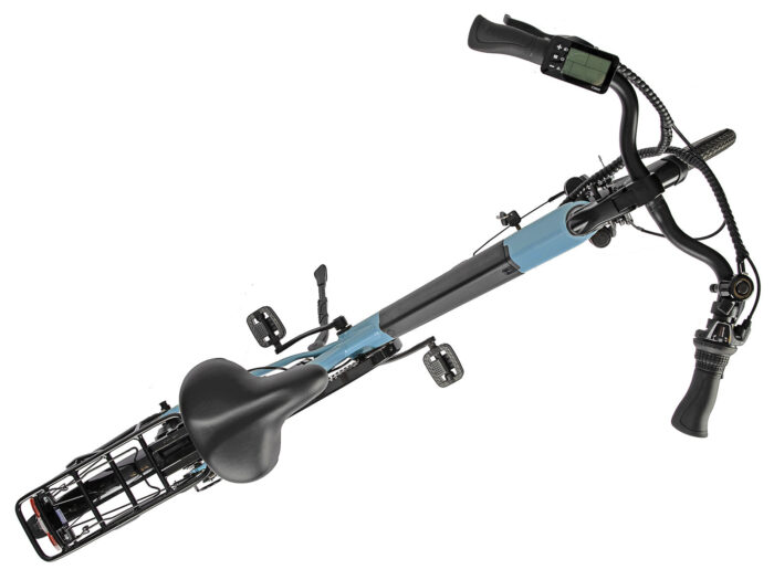De 10,4 Ah accu is keurig opgenomen in het solide aluminium frame en omdat de achterwielmotor door de cassette met 7 tandwielen voor een groot deel aan het oog wordt onttrokken is het niet direct duidelijk dat deze fraaie fiets voorzien is van elektrische trapondersteuning. Totdat u andere weggebruikers fluitend voorbijfietst, natuurlijk.