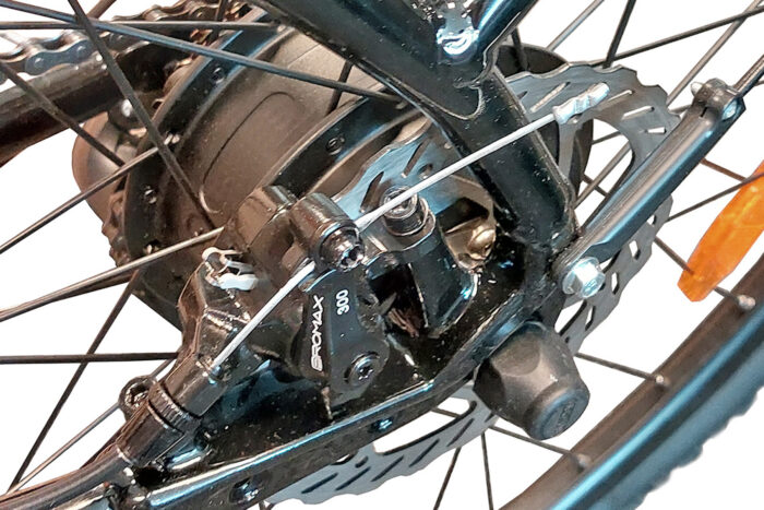 De 13 Ah accu is keurig opgenomen in het solide aluminium frame en omdat de Bafang achterwielmotor door de cassette met 7 tandwielen voor een groot deel aan het oog wordt onttrokken is het niet direct duidelijk dat deze fraaie fiets voorzien is van elektrische trapondersteuning. Totdat u andere weggebruikers fluitend voorbijfietst, natuurlijk.