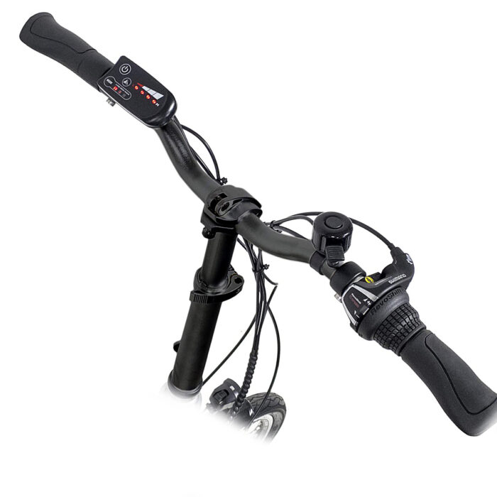 Compact in te klappen elektrische vouwfiets met 6 versnellingen, 7.8 Ah accu, achterwielmotor en LED display. 20 inch wielen.